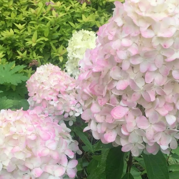 Куст плотный, высотой 120-150 см, ровный, густой. Цветки в основном стерильные, при роспуске зеленоватые, затем бело-кремовые, осенью соцветия окрашены одновременно в светло-розовый, розово-зеленоватый и белый цвет. Соцветия ширококонические, плотные. Цветёт обильно с июля по конец сентября. Зона 4 (до -29°).