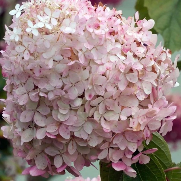 Соцветия - очень крупные, пышные, состоящие практически только из стерильных цветков. Цветение очень обильное и продолжительное. Окраска соцветий кремовая, с небольшим розовым румянцем на концах соцветий.