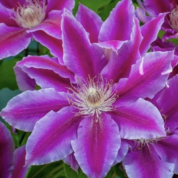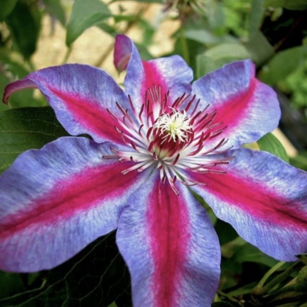 Японский сорт с красивыми крупными двуцветными цветками. Лиана длиной до 3 метров. Цветки крупные до 15-18 см в диаметре. Окраска фиолетовая с красной полосой. Цветение обильное с мая по июнь, на побегах прошлого и текущего года. Нуждается в слабой обрезке.