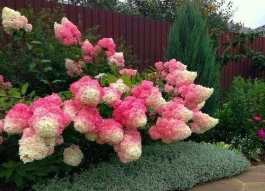 Гортензия метельчатая — это кустарник, сбрасывающий листву, или небольшое деревце, достигающее высоты до 3 метров. Период цветения приходится на июль-октябрь, когда появляются метельчатые соцветия, состоящие из крупных бесплодных и мелких плодущих цветков. Изначально цветки имеют белый оттенок, который меняется в зависимости от сорта в течение сезона. Важно отметить, что сортовые характеристики проявляются в полной мере у взрослых растений.